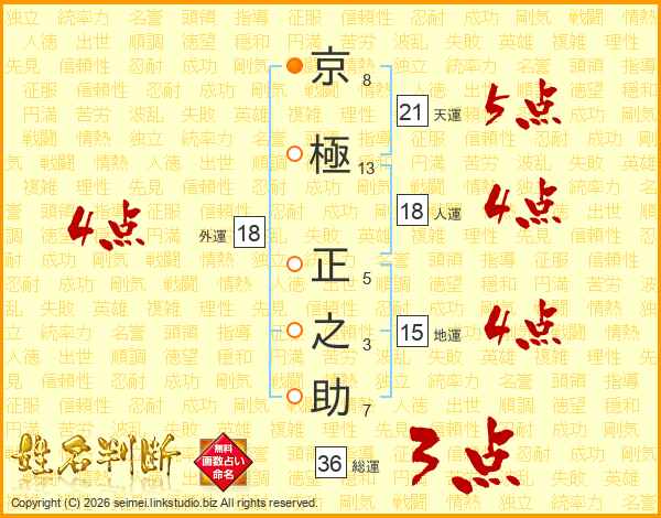 京(8画)極(13画) 正(5画)之(3画)助(7画)