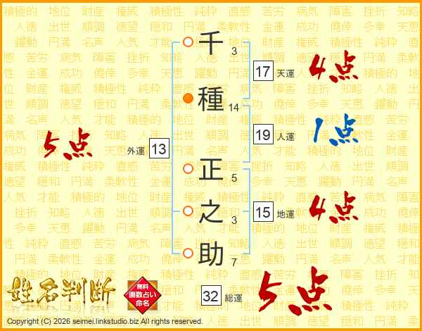 千種正之助さんの総運は32画の5点!