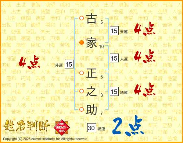 古家正之助さんの人運は15画の4点!