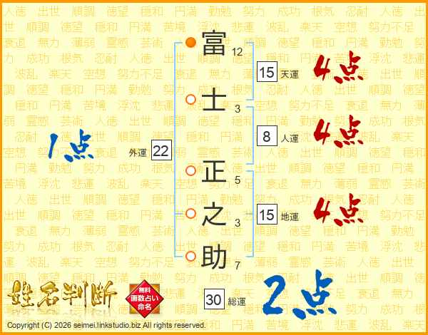 富士正之助さんの天運は15画の4点!