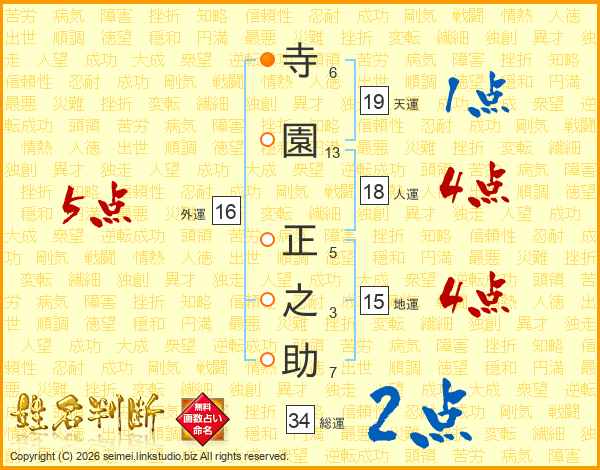 寺(6画)園(13画) 正(5画)之(3画)助(7画)