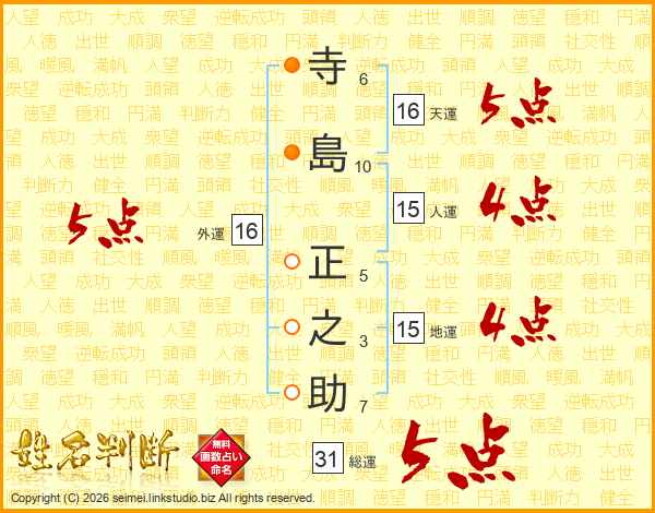 寺島正之助さんの総運は31画の5点!