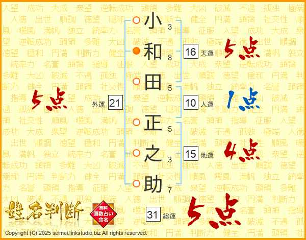 小和田正之助さんの外運は21画の5点!
