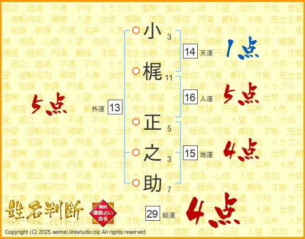小(3画)梶(11画) 正(5画)之(3画)助(7画)