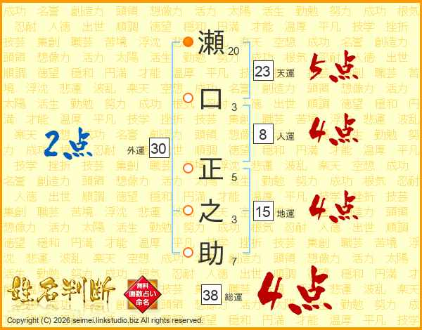瀬口正之助さんの総運は38画の4点!