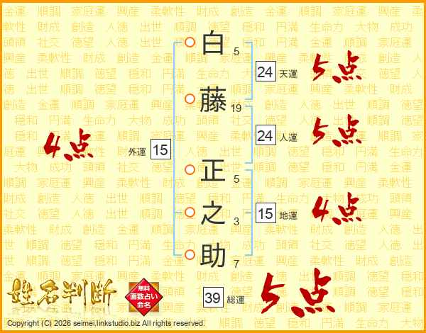 白藤正之助さんの総運は39画の5点!
