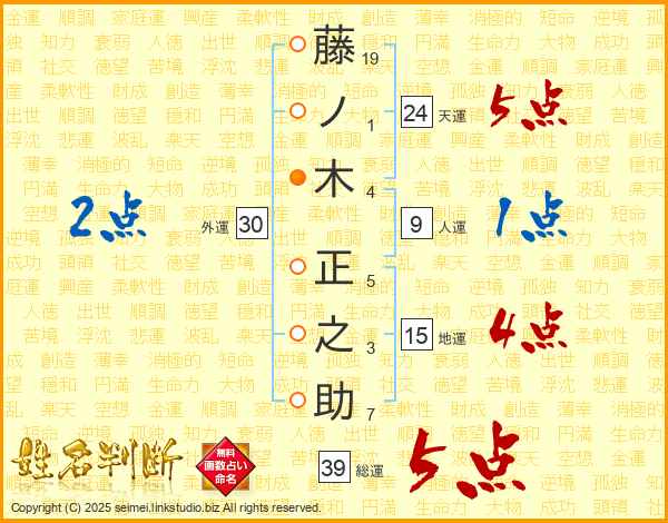 藤(19画)ノ(1画)木(4画) 正(5画)之(3画)助(7画)