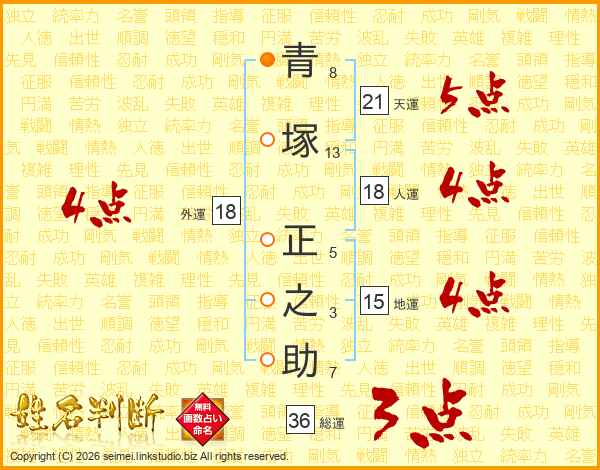青塚正之助さんの総運は36画の3点!