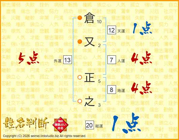 倉又正之さんの人運は7画の4点!
