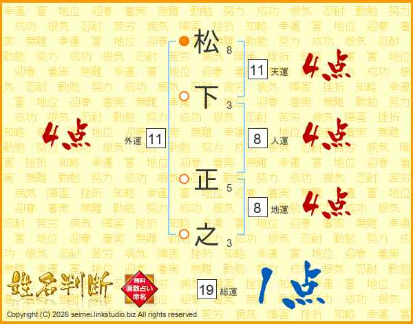 松下正之さんの総運は19画の1点!