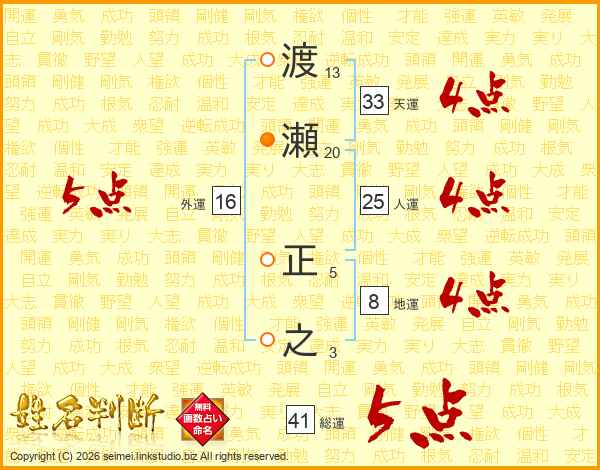 渡(13画)瀬(20画) 正(5画)之(3画)