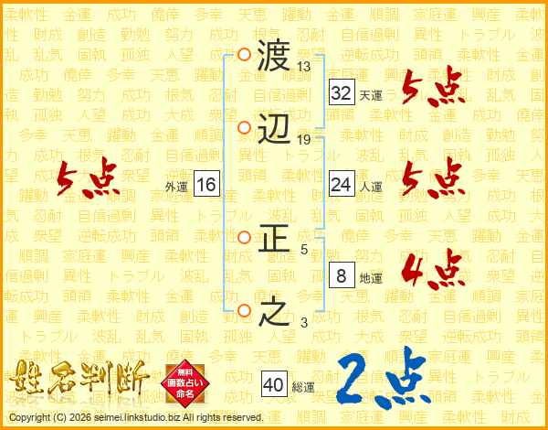 渡辺正之さんの人運は24画の5点!