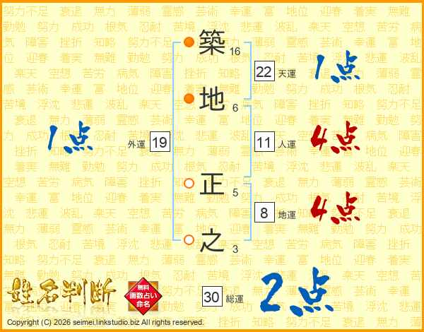 築地正之さんの人運は11画の4点!