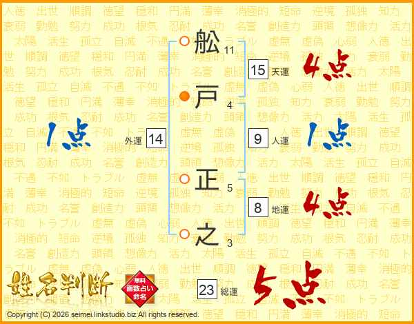 舩戸正之さんの総運は23画の5点!