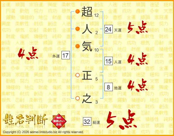 超人気正之さんの総運は32画の5点!