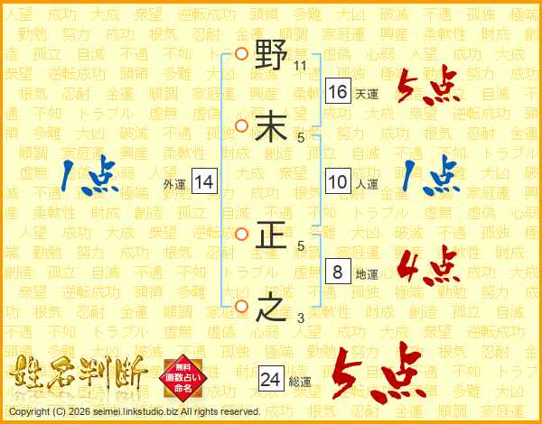 野末正之さんの総運は24画の5点!