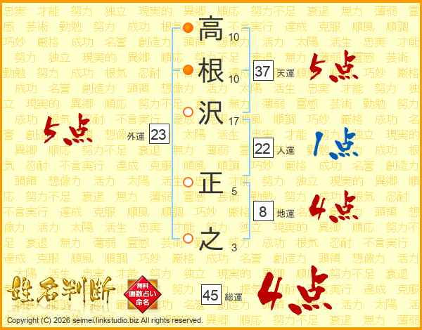 高根沢正之さんの総運は45画の4点!