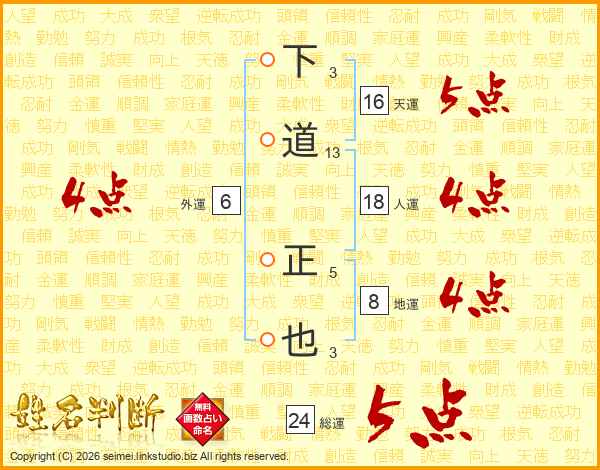 下道正也さんの総運は24画の5点!