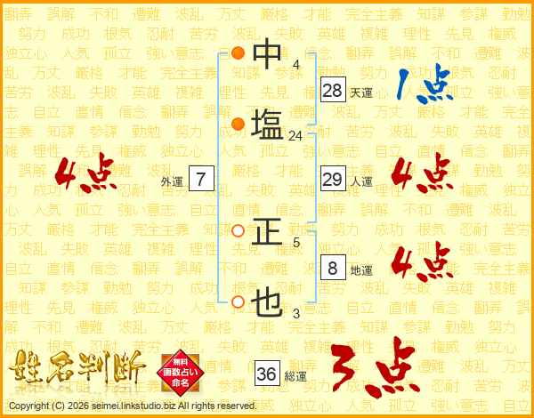 中塩正也さんの総運は36画の3点!