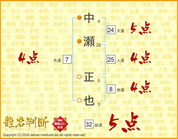 中瀬正也さんの総運は32画の5点!