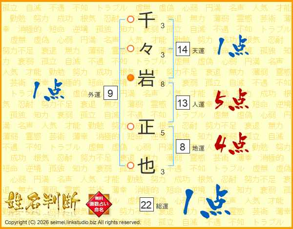 千々岩正也さんの人運は13画の5点!