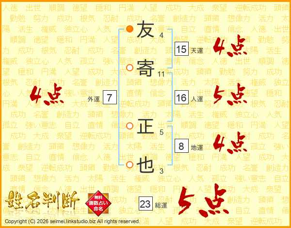 友寄正也さんの総運は23画の5点!