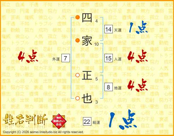 四家正也さんの総運は22画の1点!