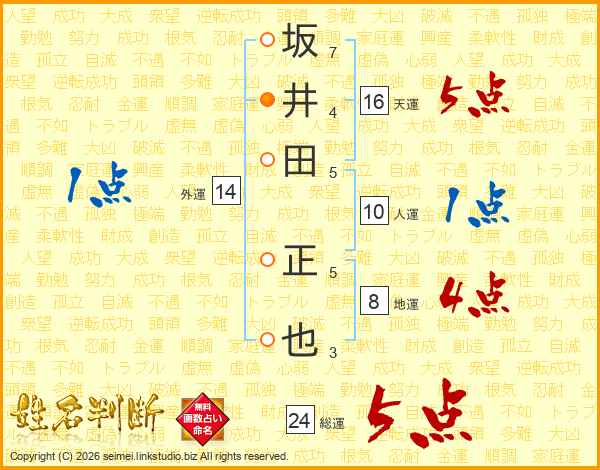 坂井田正也さんの総運は24画の5点!