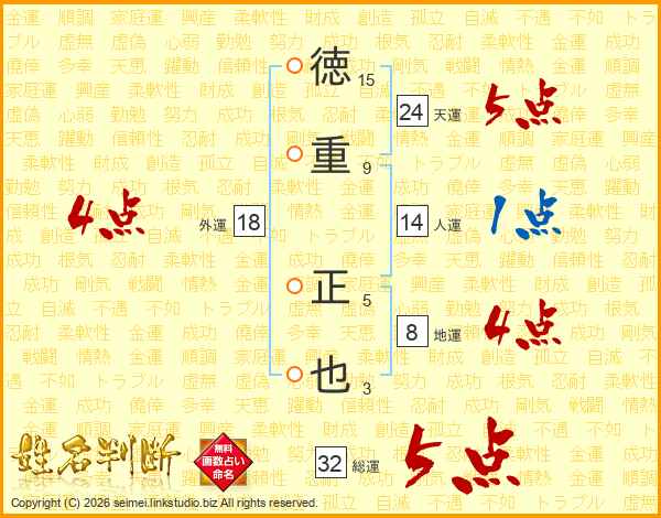 徳重正也さんの総運は32画の5点!