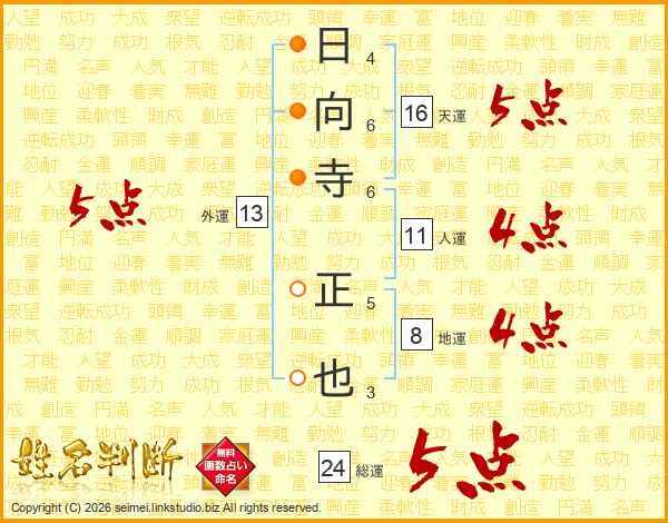 日向寺正也さんの総運は24画の5点!