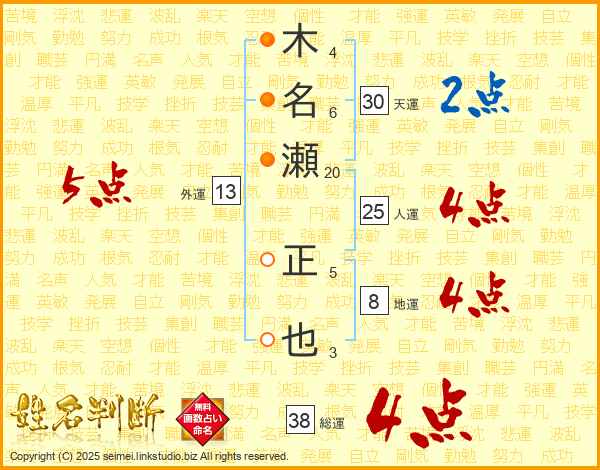 木名瀬正也さんの総運は38画の4点!
