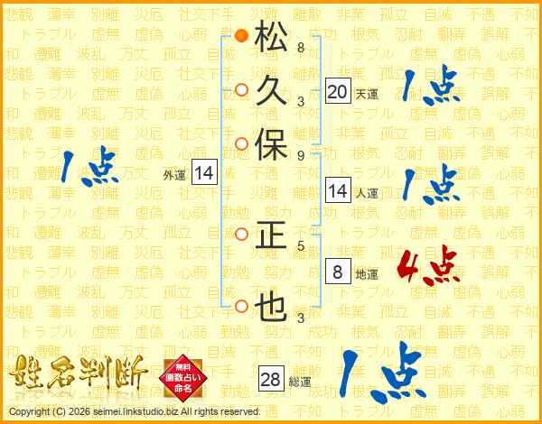 松(8画)久(3画)保(9画) 正(5画)也(3画)