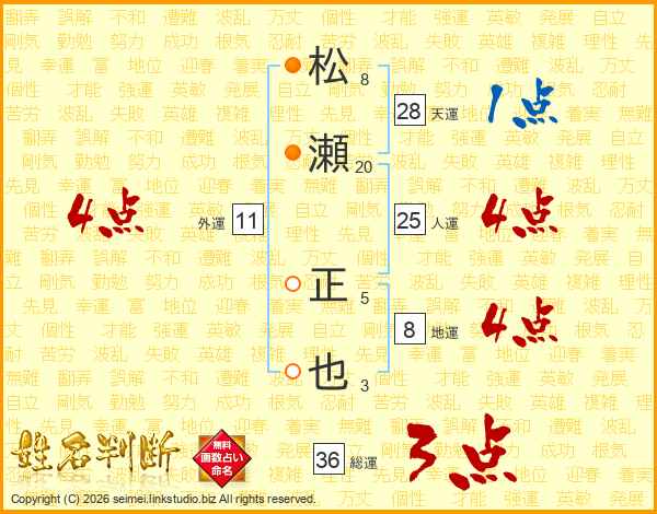 松瀬正也さんの総運は36画の3点!