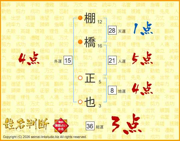 棚橋正也さんの総運は36画の3点!