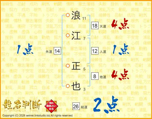 浪江正也さんの天運は18画の4点!