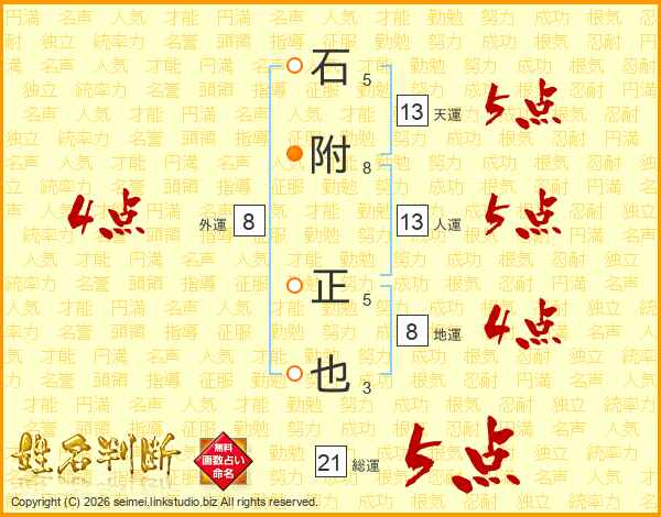 石附正也さんの総運は21画の5点!
