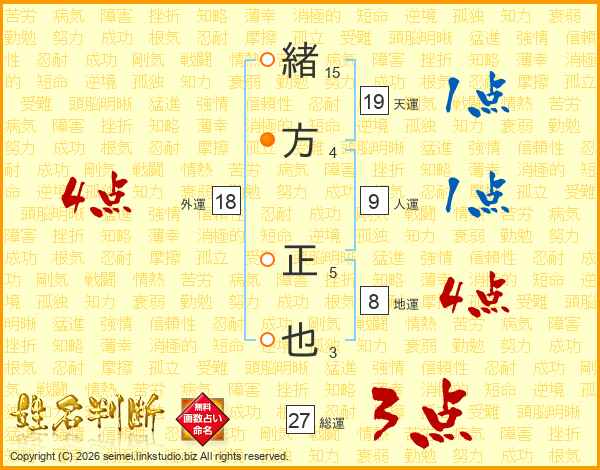 緒方正也さんの総運は27画の3点!