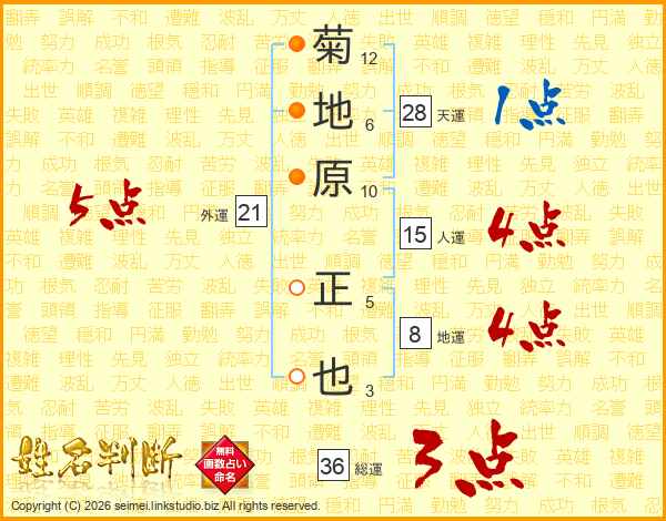 菊地原正也さんの天運は28画の1点!