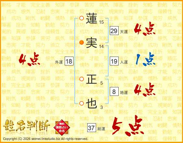 蓮実正也さんの総運は37画の5点!