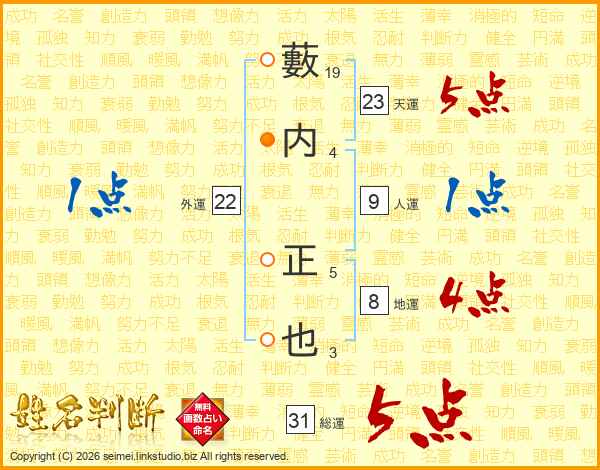 藪内正也さんの総運は31画の5点!
