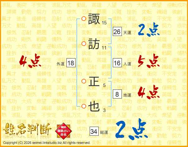 諏訪正也さんの天運は26画の2点!