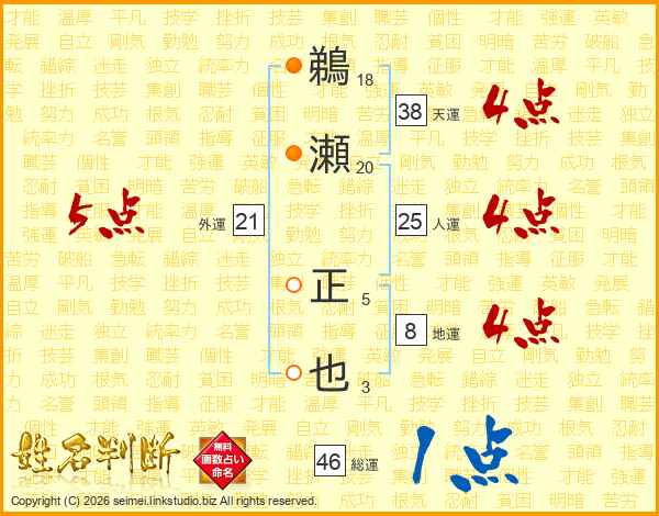 鵜瀬正也さんの総運は46画の1点!