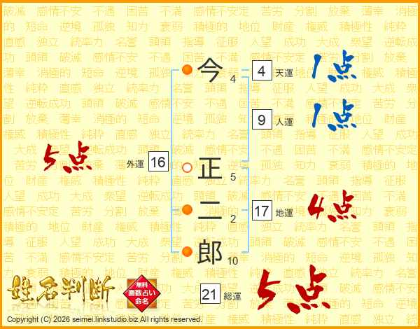 今正二郎さんの総運は21画の5点!