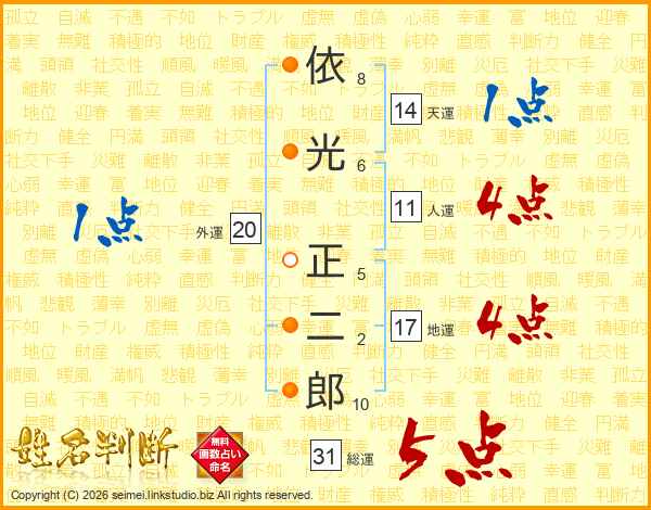 依(8画)光(6画) 正(5画)二(2画)郎(10画)