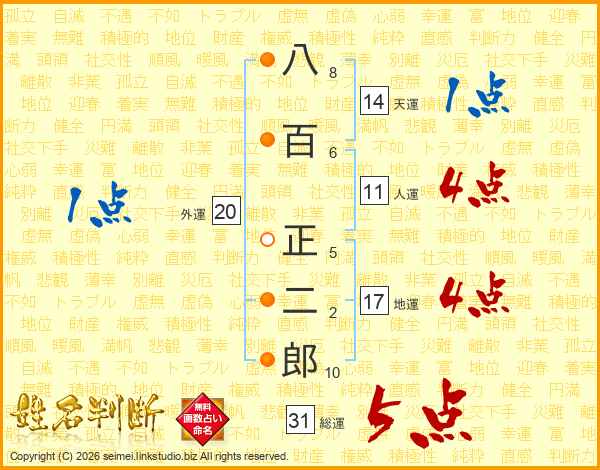 八(8画)百(6画) 正(5画)二(2画)郎(10画)