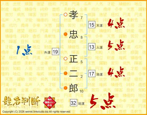 孝忠正二郎さんの総運は32画の5点!