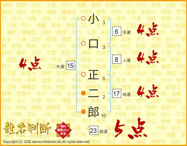 小口正二郎さんの総運は23画の5点!