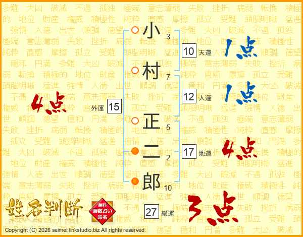 小村正二郎さんの総運は27画の3点!