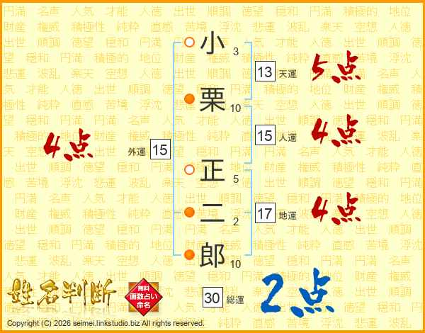 小栗正二郎さんの天運は13画の5点!