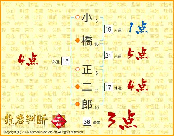 小橋正二郎さんの人運は21画の5点!